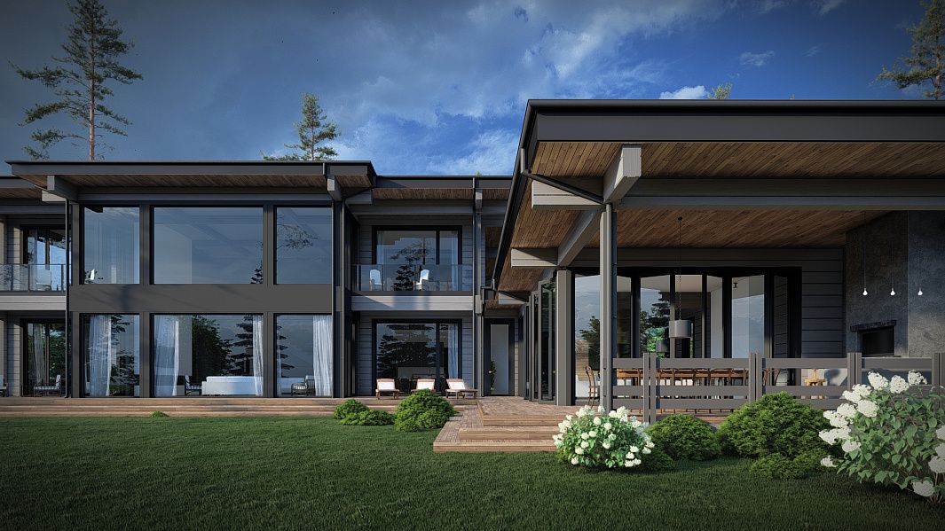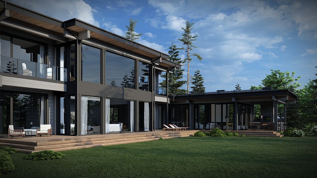 Кровля: металлочерепица (см примечание в нюансах) с утеплением 200мм (Paroc Extra Финляндия или аналог), снегозадержатели, водосточная система: включена.