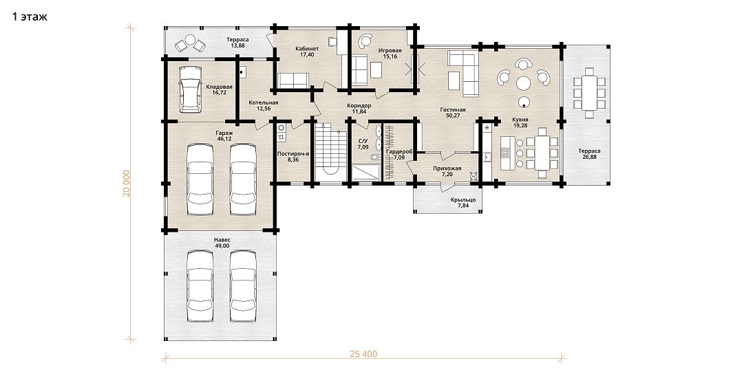 Внешняя чистовая отделка: Чистовая декоративная штукатурка наружных стен дома.