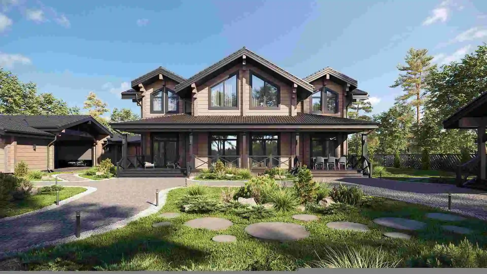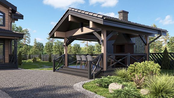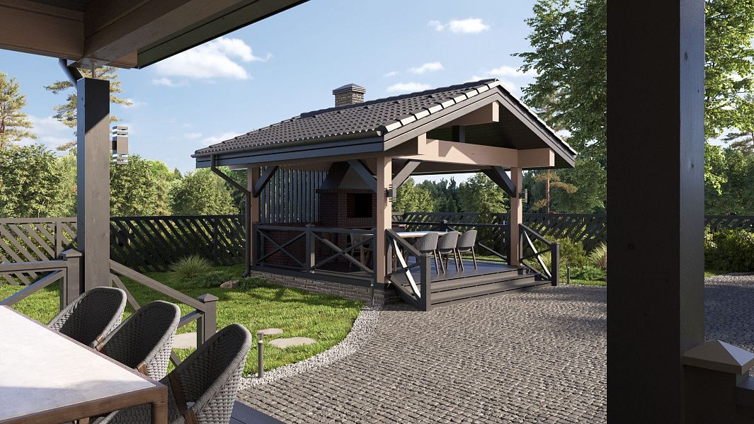 Единый ансамбль. Нашими архитекторами в единой стилистике с домом были также спроектированы гараж и уютная беседка.