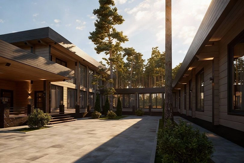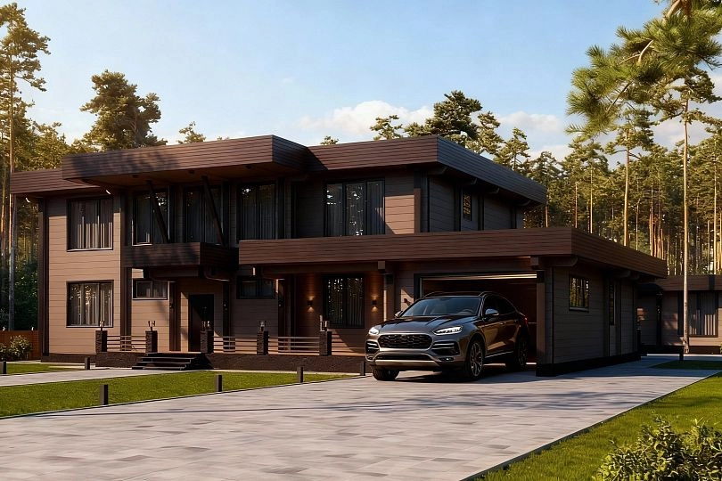 Конструктив: из клееного бруса 200х185 (экспортный клей, европейская сертификация). Лаги этажей, все необходимые материалы (включая узлы силы, rothoblaas – включены). Сверловка под скрытую электрику, чаши, вертикальный транспорт: включено