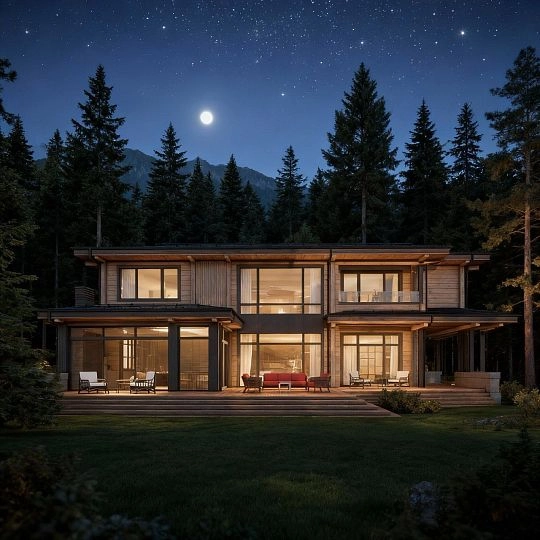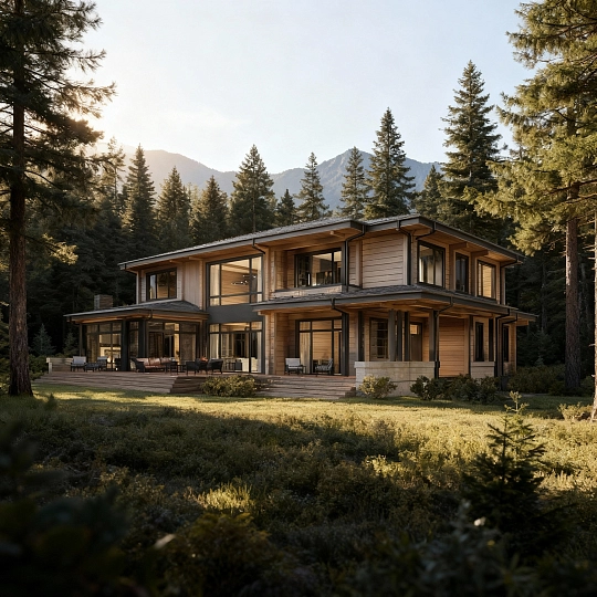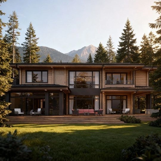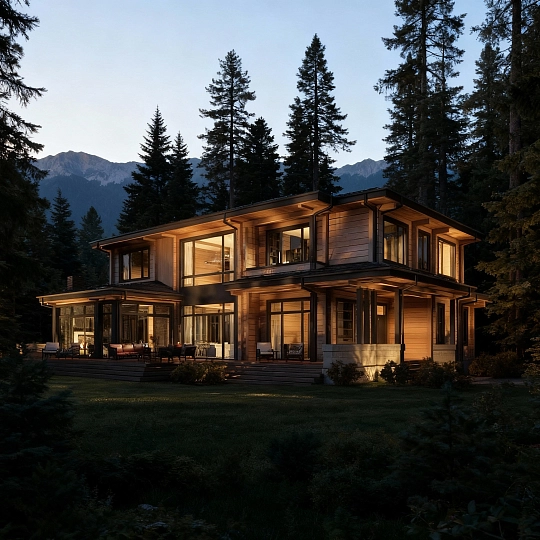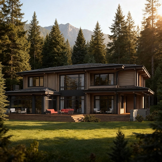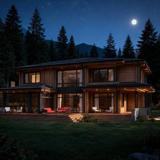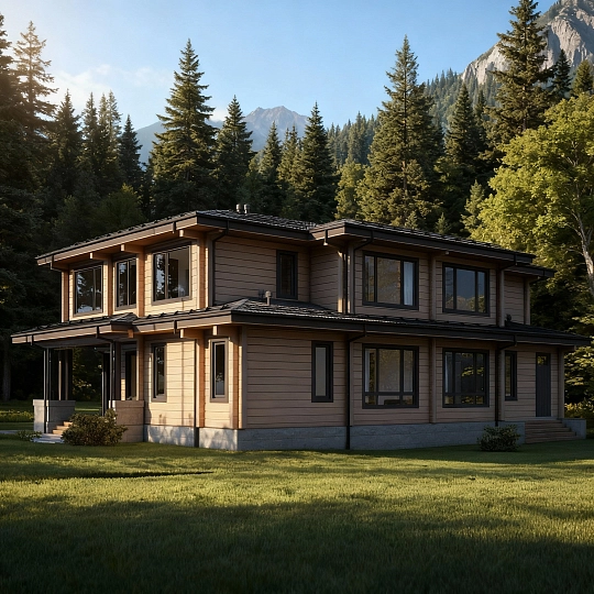 Конструктив: из клееного бруса 200х185 (экспортный клей, европейская сертификация). Лаги этажей, все необходимые материалы (включая узлы силы, rothoblaas – включены). Сверловка под скрытую электрику, чаши, вертикальный транспорт: включено