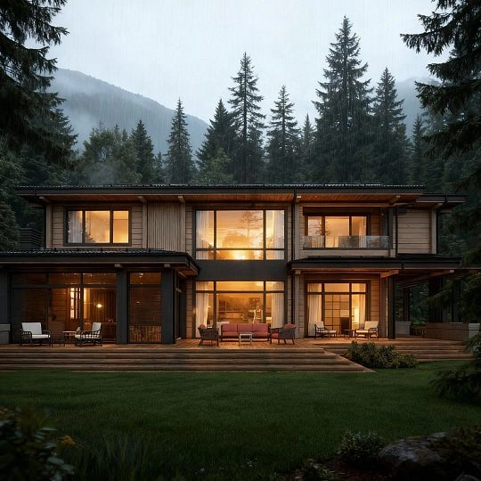 Внешняя чистовая отделка: покраска и герметизация дома, монтаж и подшив свесов кровли, укладку полов и террас, установку наличников и иные работы для доведения дома под ключ.