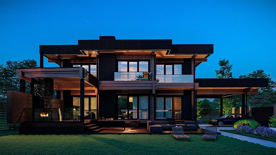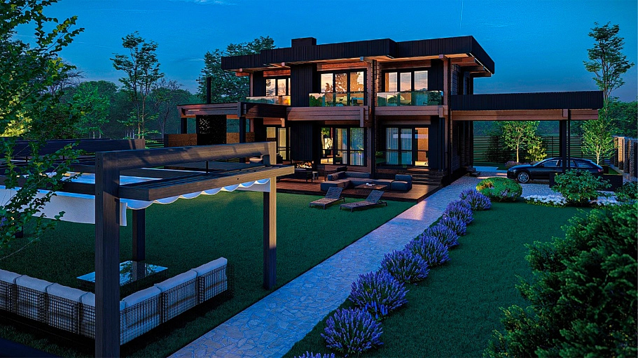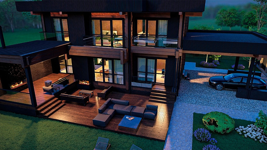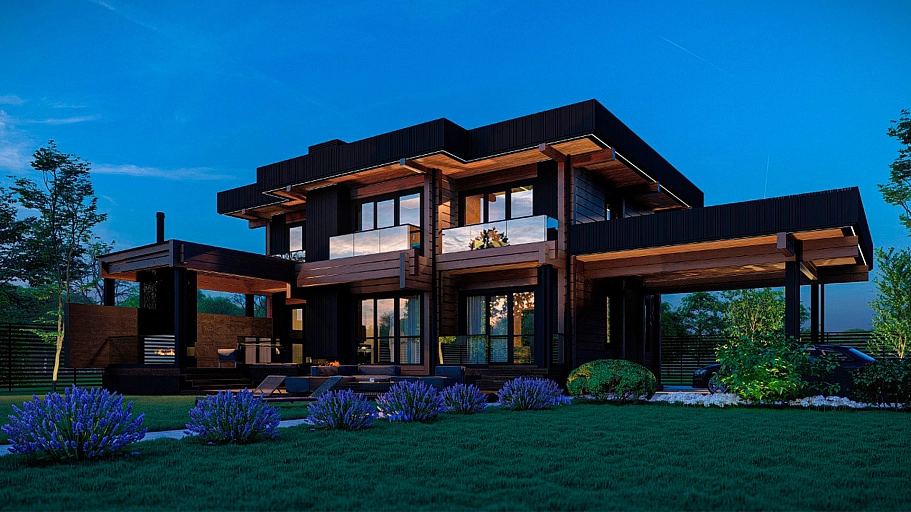 Конструктив: из клееного бруса 200х185 (экспортный клей, европейская сертификация). Лаги этажей, все необходимые материалы (включая узлы силы, rothoblaas – включены). Сверловка под скрытую электрику, чаши, вертикальный транспорт: включено