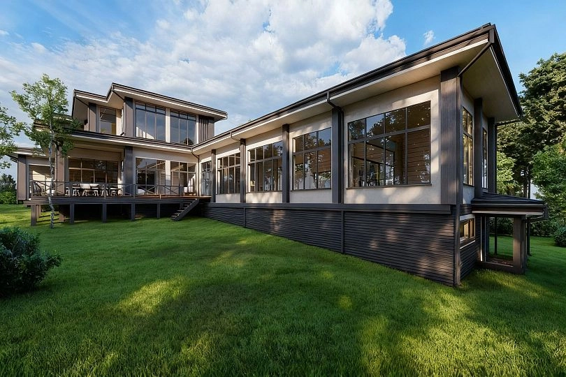 Внешняя чистовая отделка: покраска и герметизация дома, монтаж и подшив свесов кровли, укладку полов и террас, установку наличников и иные работы для доведения дома под ключ.