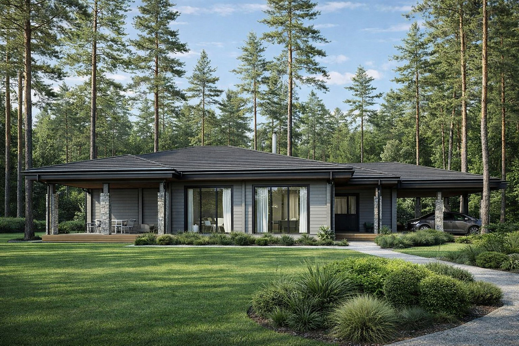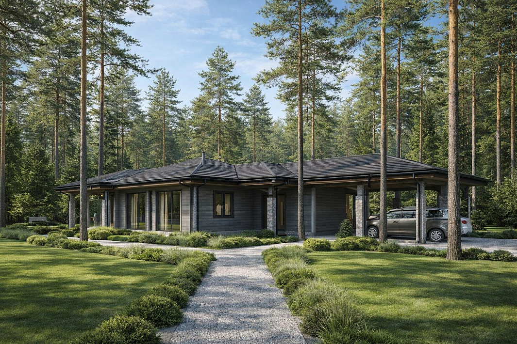 Одноэтажный дом из клееного бруса площадью 286 м² — функциональное пространство, в котором есть все необходимое для комфортной жизни.
