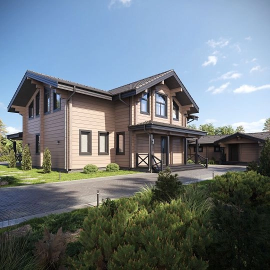 Конструктив: из клееного бруса 200х185 (экспортный клей, европейская сертификация). Лаги этажей, все необходимые материалы (включая узлы силы, rothoblaas – включены). Сверловка под скрытую электрику, чаши, вертикальный транспорт: включено