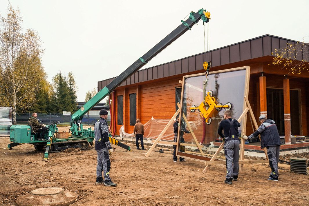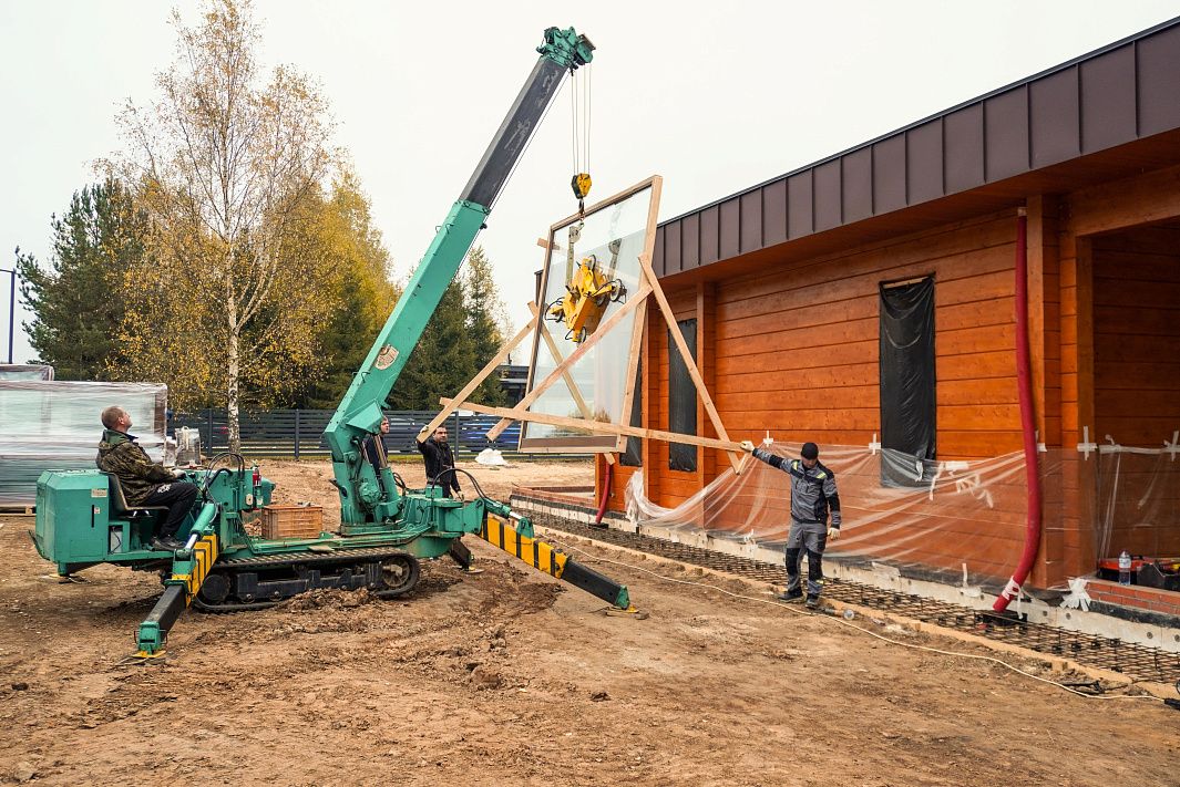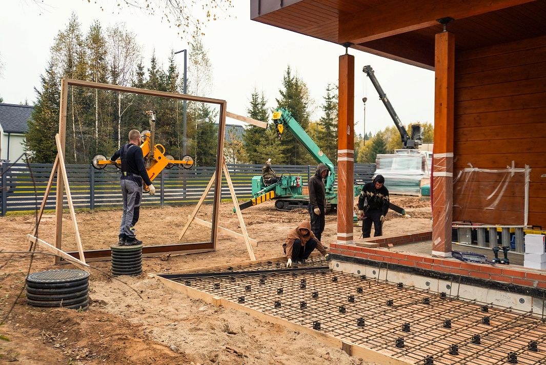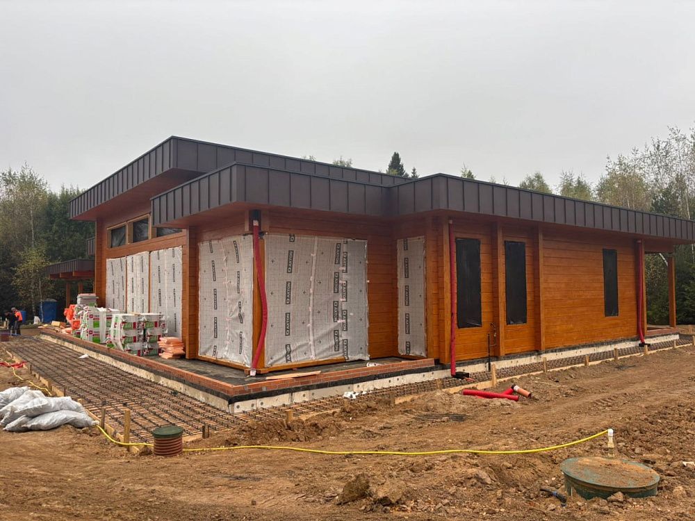 Фасадные работы и монтаж инженерных систем успешно завершены. В нашем проекте из клееного бруса установлено остекление — ключевой элемент, который уже преобразил его облик. Продолжаем работы по финишной отделке, приближая дом к полному соответствию с архитектурным замыслом.