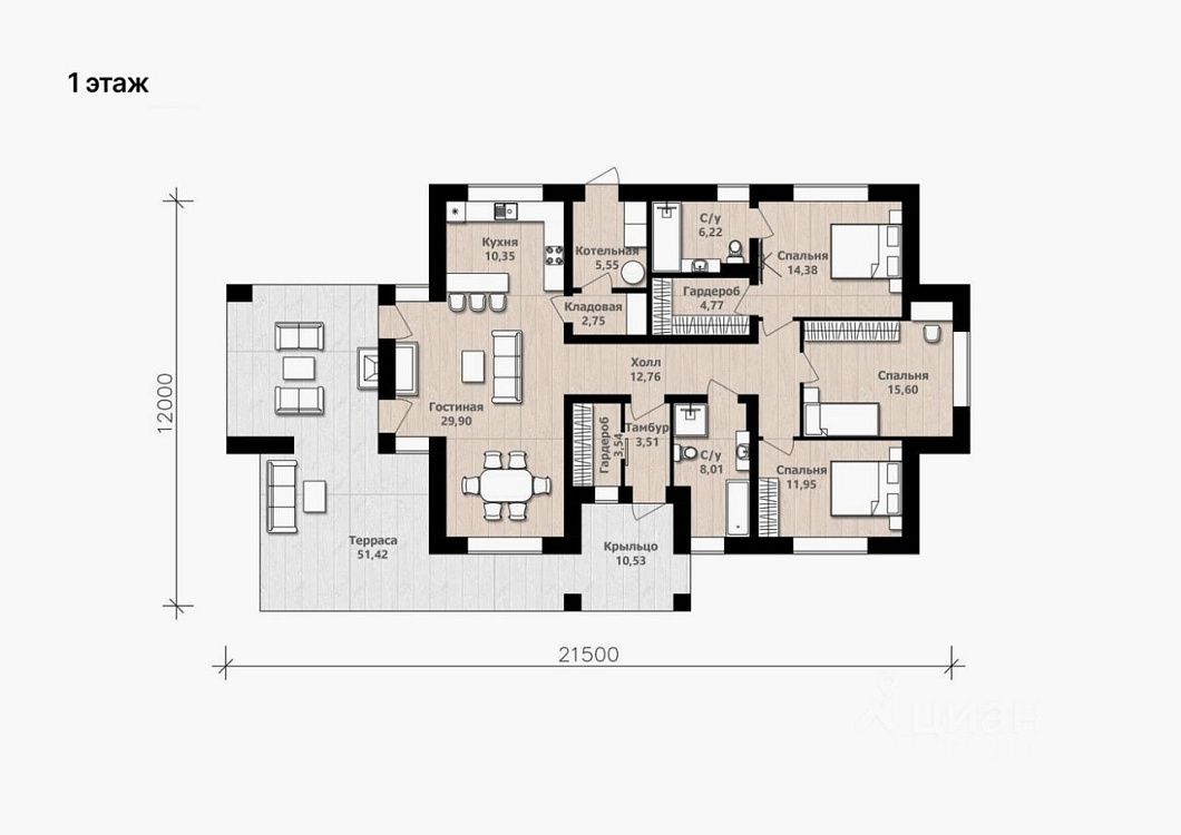 Стены: из керамического блока Porotherm 38 Thermo, Porotherm 25 внутри. Теплый кладочный раствор Porotherm, армопояса и жб перекрытия: включено.