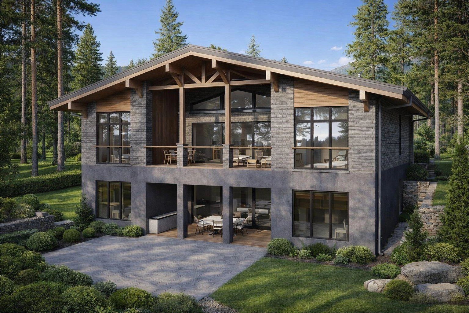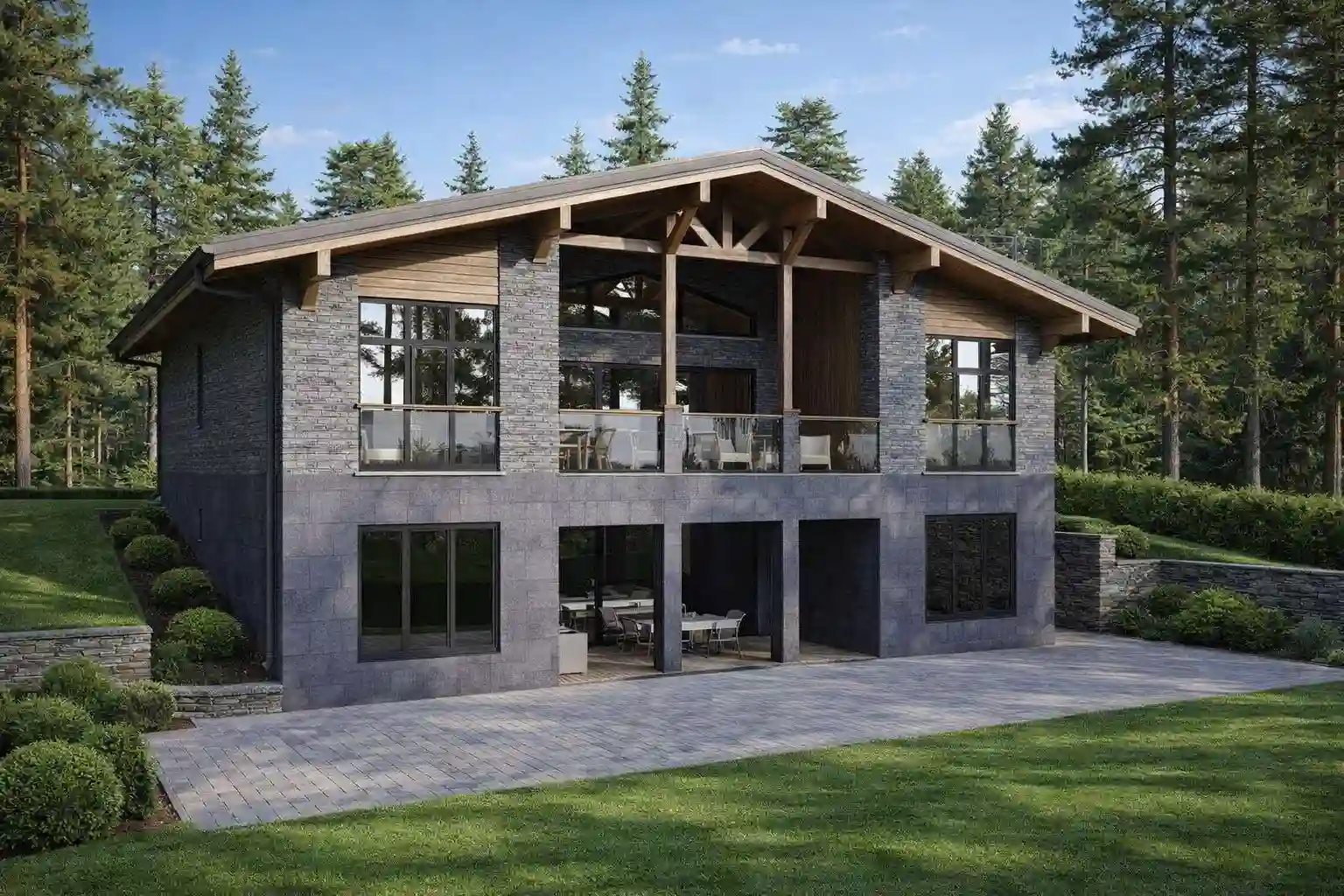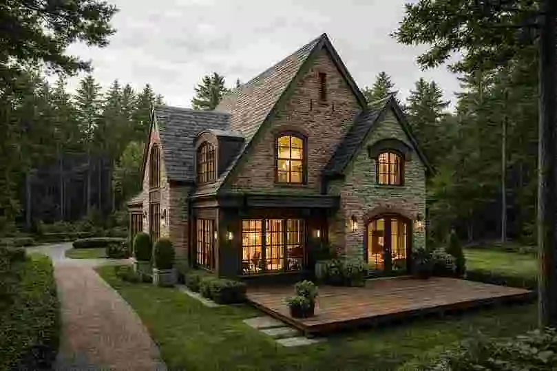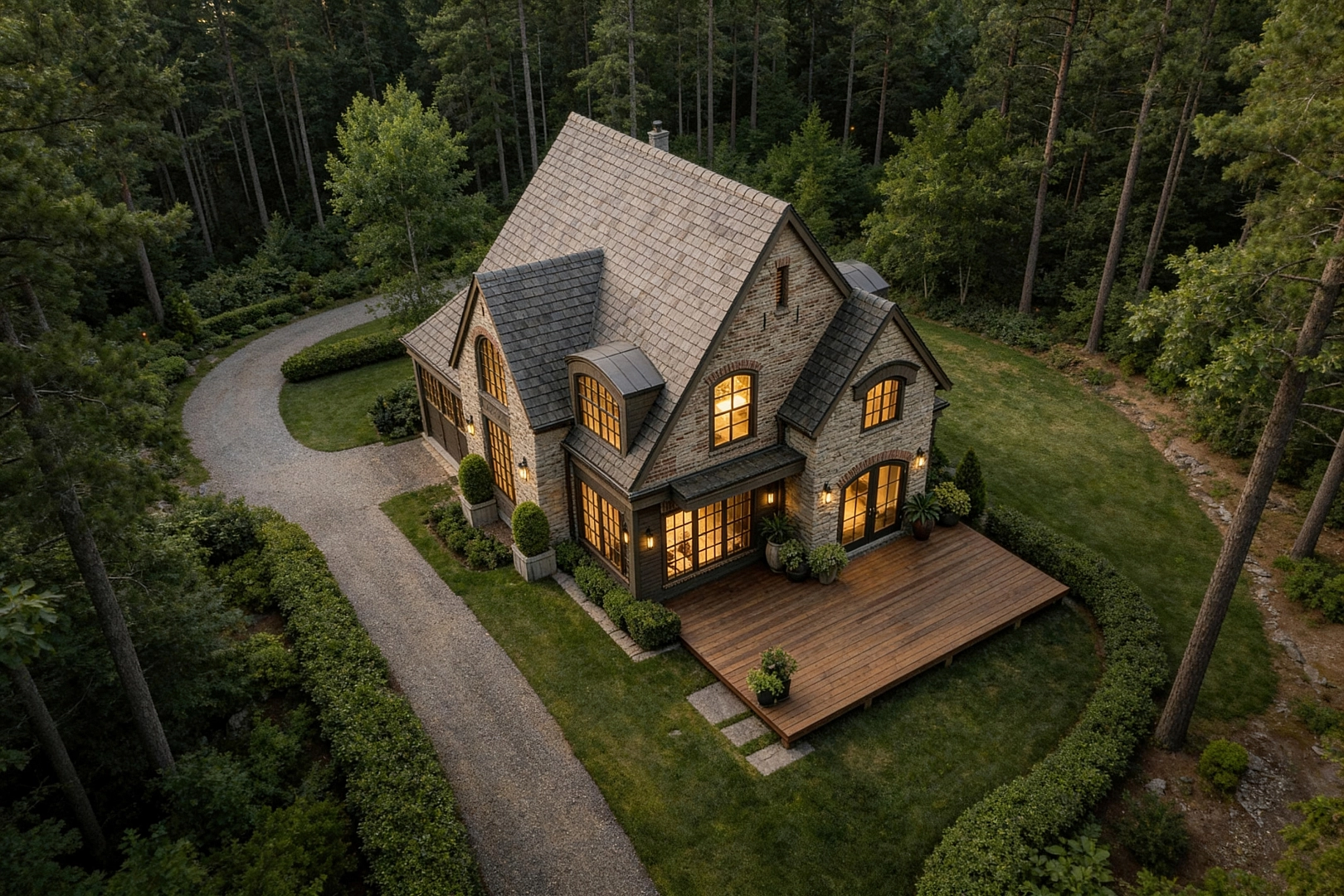 Этот стиль основывается на идее гармонии с природой: дом словно становится частью участка и подчеркивает красоту окружающего ландшафта. Для него характерны широкие горизонтальные линии, большие окна, плоские или пологие крыши, а в отделке преобладают спокойные, натуральные оттенки. Атмосфера таких домов ассоциируется со статусом, балансом и ощущением единства с окружающим миром.