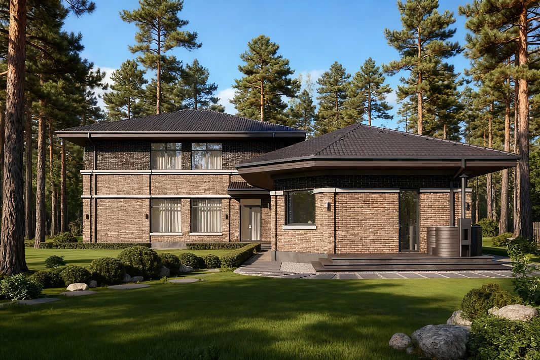 Стены: из керамического блока Porotherm 38 Thermo, Porotherm 25 внутри. Теплый кладочный раствор Porotherm, армопояса и жб перекрытия: включено.