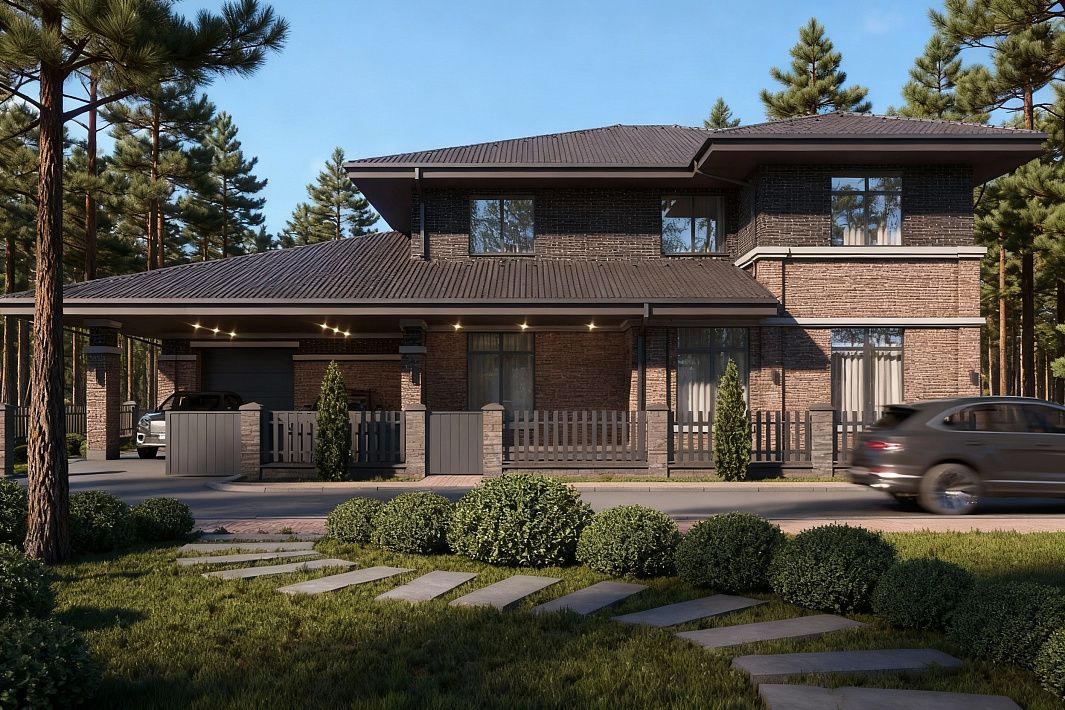 Кровля: металлочерепица (см примечание в нюансах) с утеплением 200мм (Paroc Extra Финляндия или аналог), снегозадержатели, водосточная система: включена.