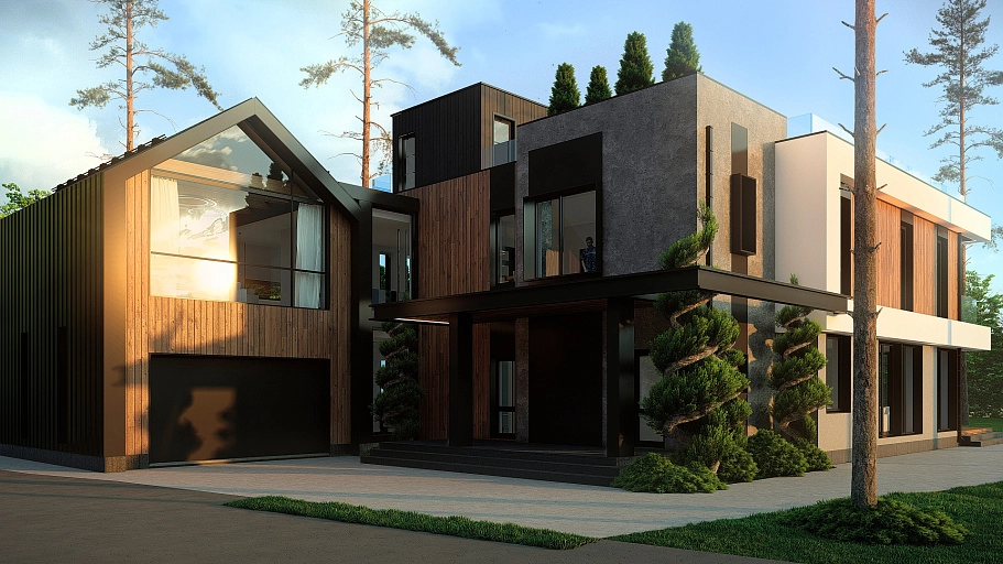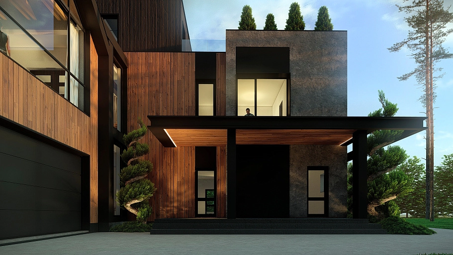 Внешняя чистовая отделка: Чистовая декоративная штукатурка наружных стен дома.