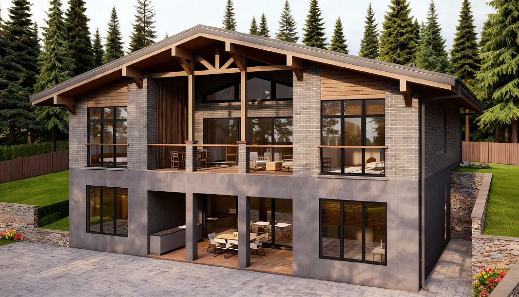 Кровля: металлочерепица с утеплением 200мм, снегозадержатели, водосточная система: включена.