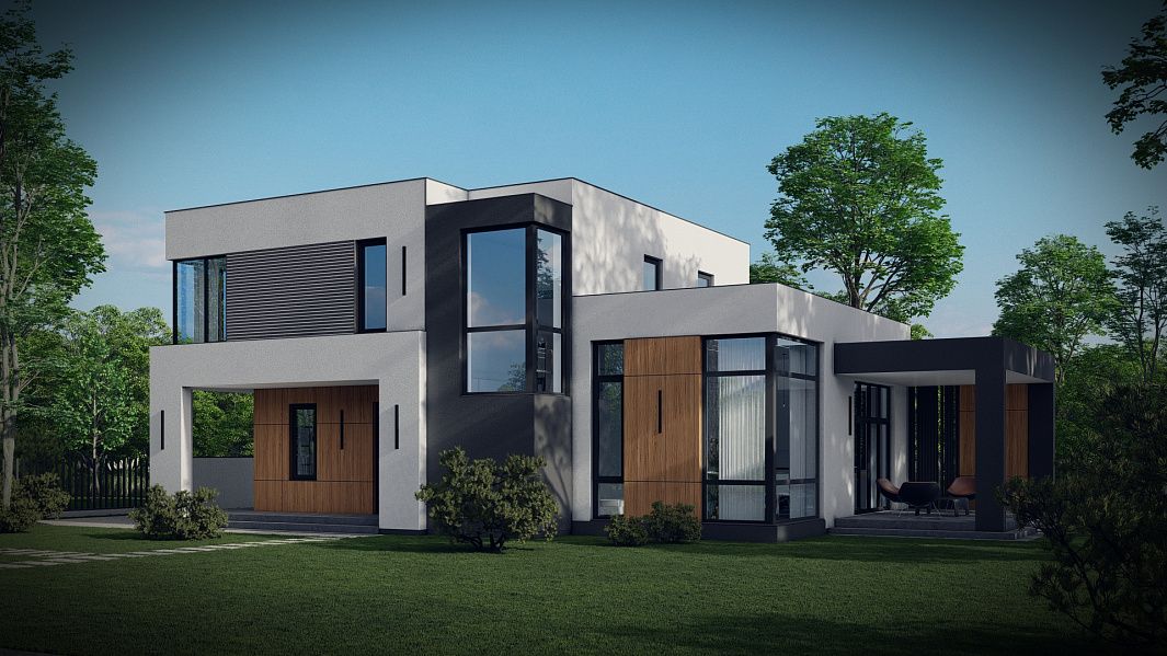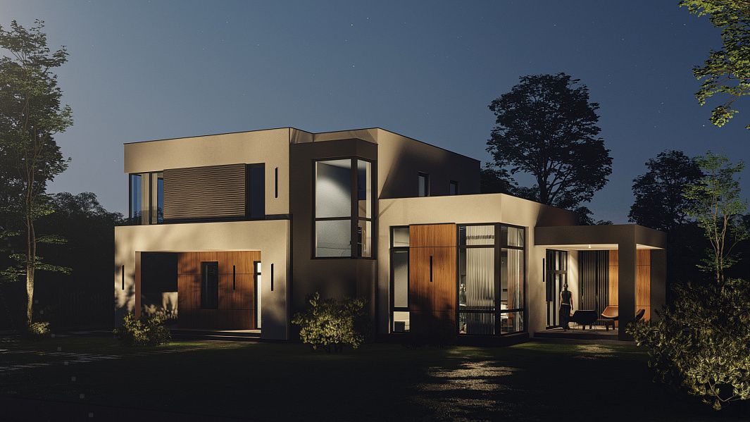 Внешняя чистовая отделка: Чистовая декоративная штукатурка наружных стен дома.