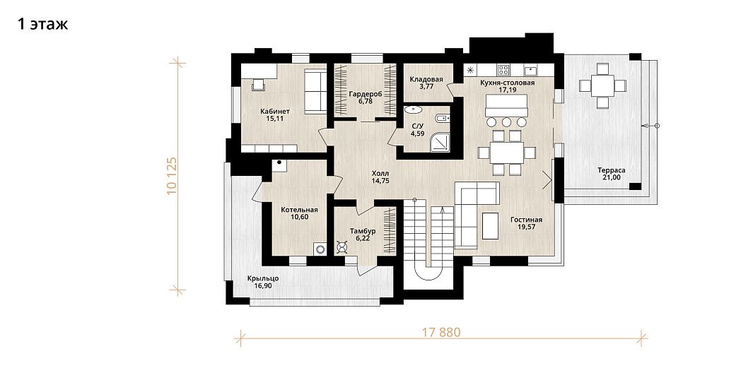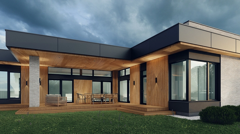Стены: из керамического блока Porotherm 38 Thermo, Porotherm 25 внутри. Теплый кладочный раствор Porotherm, армопояса и жб перекрытия: включено.