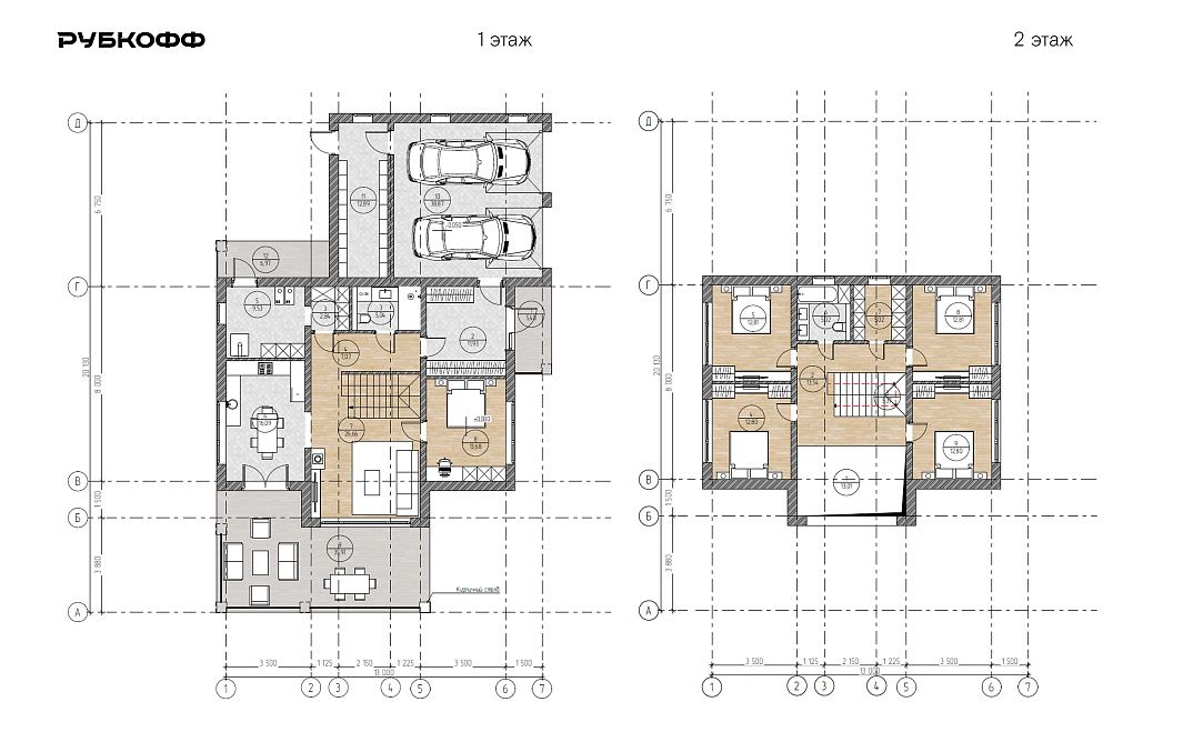 Фундамент: железобетонная плита 250мм (бетон не ниже М350, арматура d8-12мм), закладные для инженерии, гидроизоляция под стены, геология и привязка: все включено.