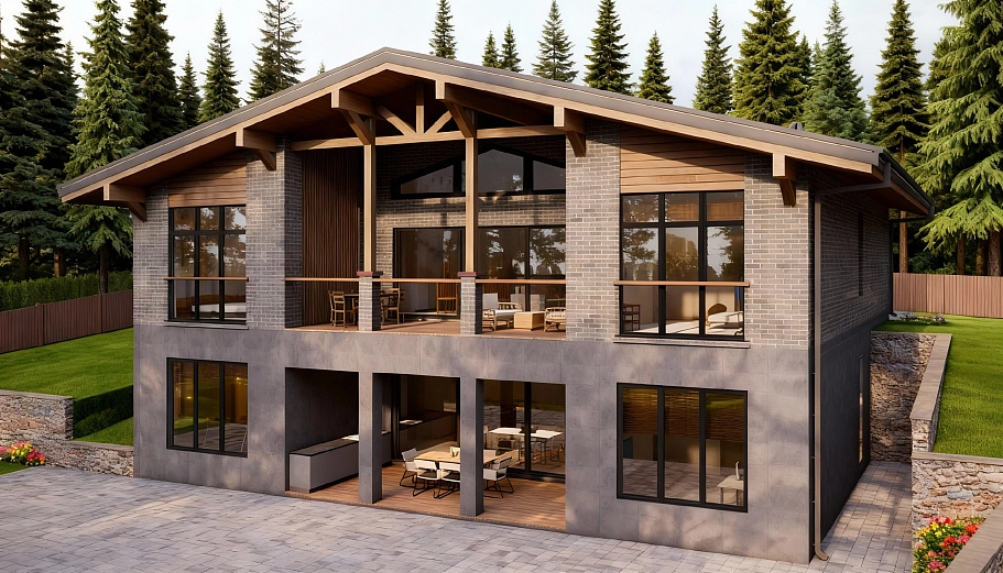 Кровля: металлочерепица с утеплением 200мм, снегозадержатели, водосточная система: включена.