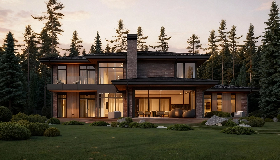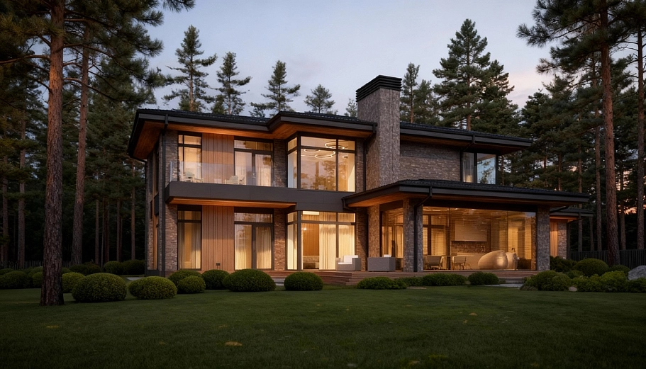 Дизайн не отвлекает от наслаждения природой и делает этот дом комфортным местом для жизни и отдыха.