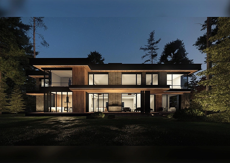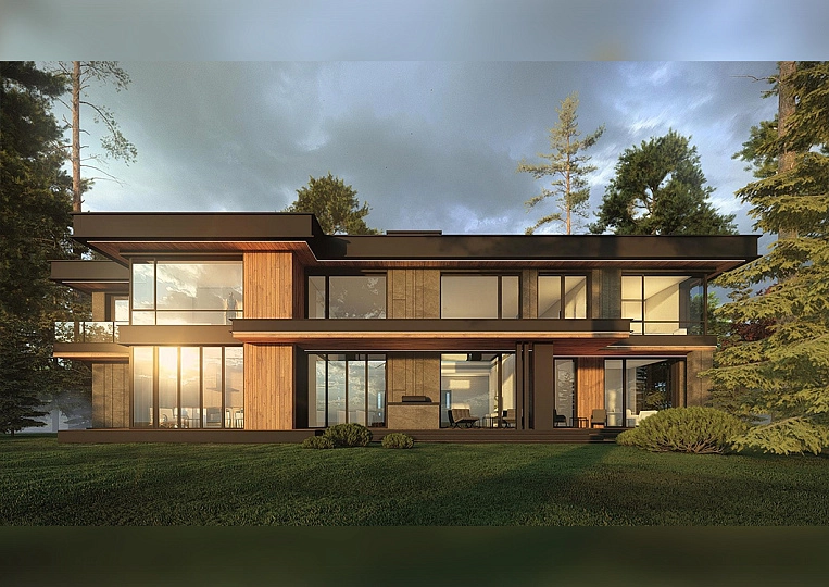 Особенно великолепен здесь открытый план кухни-гостинной, через которую открывается вид на террасу и природу за окном.