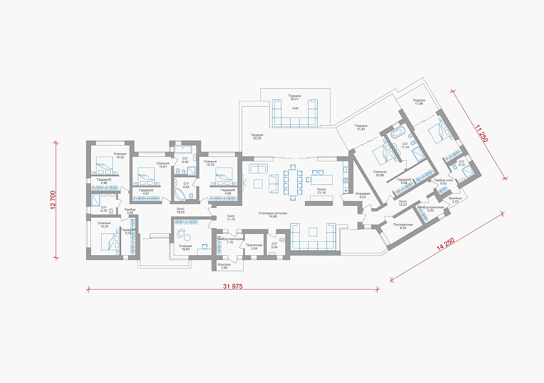 В доме есть четыре просторные спальни, каждый член семьи будет чувствовать себя комфортно.