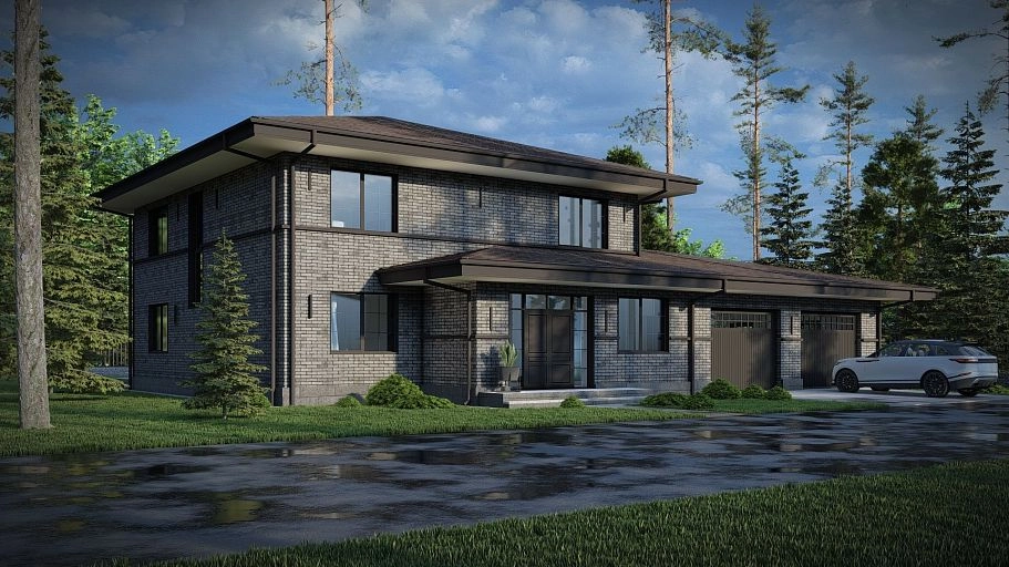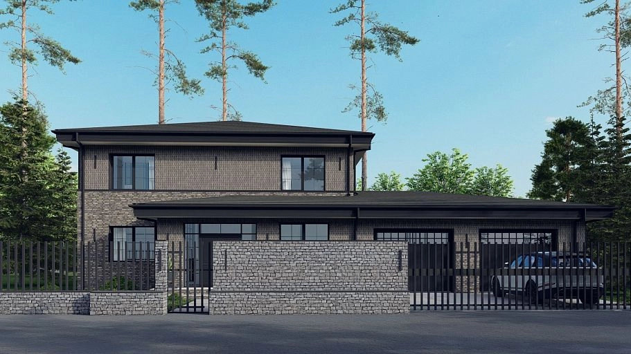 Кровля: металлочерепица (см примечание в нюансах) с утеплением 200мм (Paroc Extra Финляндия или аналог), снегозадержатели, водосточная система: включена.