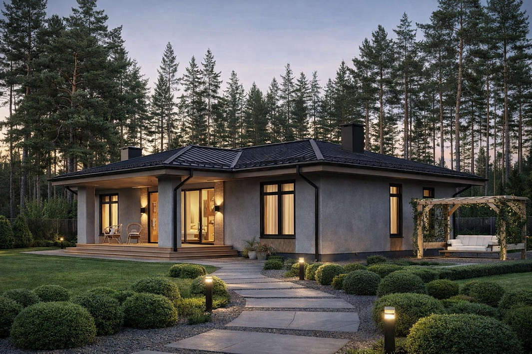 Castra - идеальный одноэтажный дом для любителей обилия света и пространства. Благодаря окнам от пола до потолка, здесь создается визуальная связь с окружающим миром. Жизнь в таком доме дарит постоянное чувство свободы и легкости.