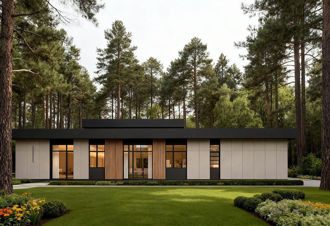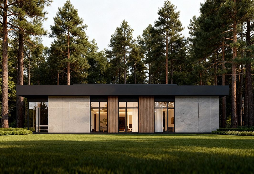 Фундамент: железобетонная плита 200мм (бетон не ниже М300, арматура d8-12мм), закладные для инженерии, гидроизоляция под стены, геология и привязка: все включено.