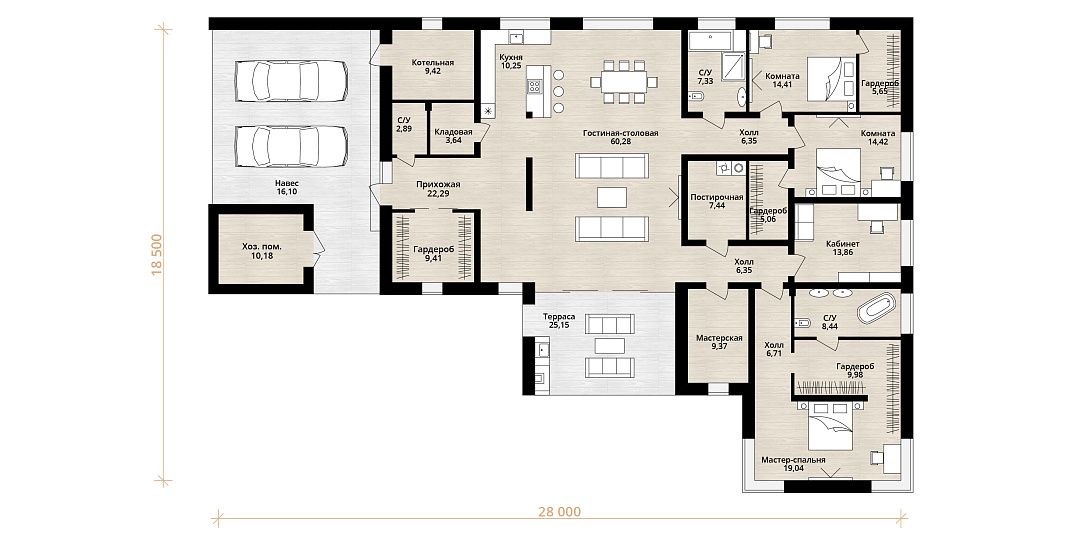 | Размер | 28x18,5 м |