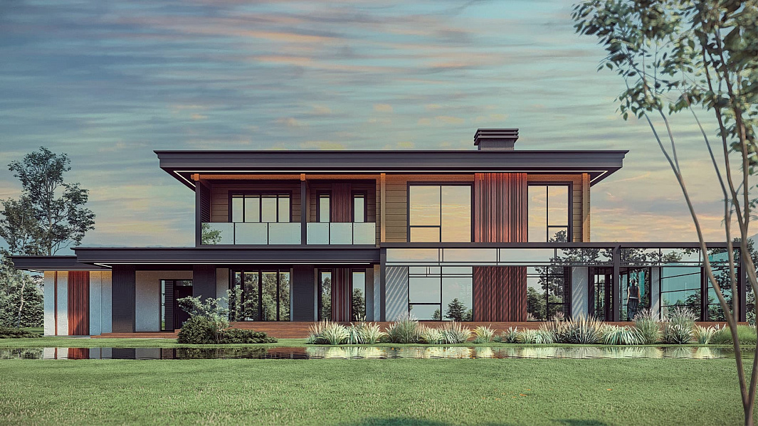 Проект Elegance - это двухэтажный комбинированный дом с плоской крышей, который идеально подходит для людей, ценящих комфорт и эксклюзивность в загородной жизни.