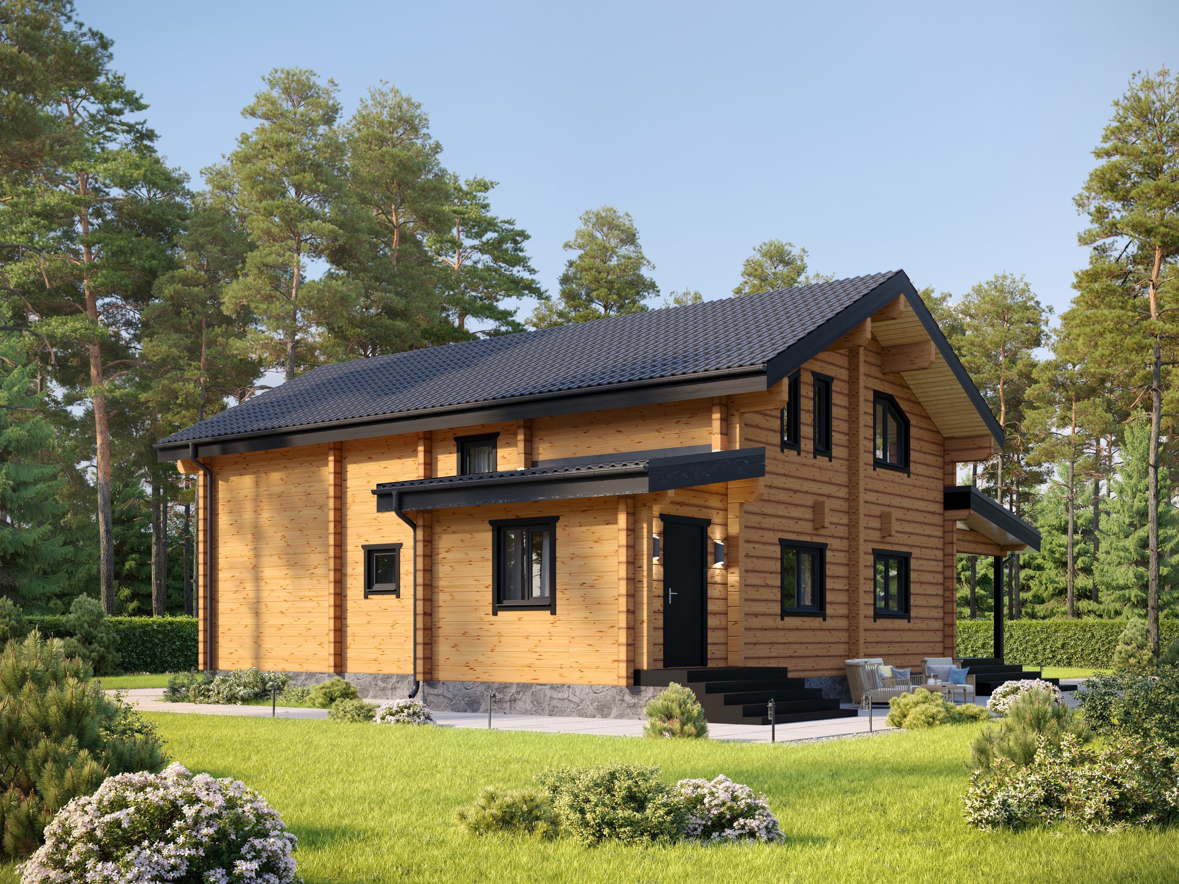 Проект П208 – привлекательный деревянный дом для большой семьи.