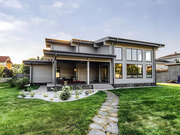 Просторный дом представляет из себя комбинацию теплоты и природной красоты дерева с современным дизайном и удобствами.