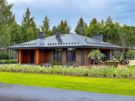 “Проектируя загородный дом, мы уделили большое внимание планировке и комфорту пребывания на свежем воздухе. Терраса с теплым полом, просторная зона патио, мангальная зона, благоустроенная лужайка – все это выражает нашу заботу об удобстве проживания за городом”.