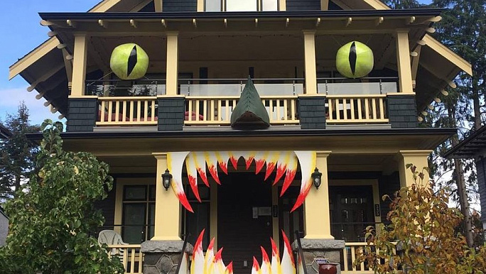 Нам нравится Хэллуин своими декорациями. Традиция украшать загородные дома у нас пока только зарождается, а в США домовладельцы уже не одно десятилетие отрываются от души. Мы собрали для Вас несколько вдохновляющих вариантов украшений экстерьера дома. Листайте, вдохновляйтесь.