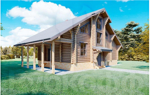 Фото дома и визуализации проекта в карусели.