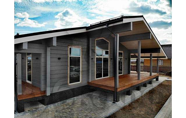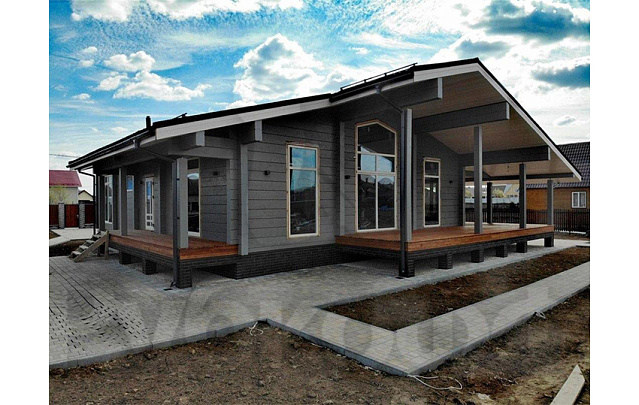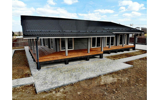 Необычный вариант отделки цоколя дома со свайным фундаментом.