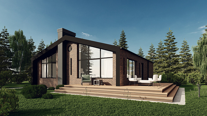Благодаря большой площади остекления в доме будет отличное естественное освещение комнат в течение всего дня, с непередаваемым ощущением единства с природой.