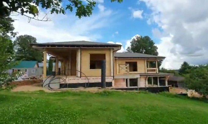 Обзор со стройки комбинированного дома на берегу Волги. Одно удовольствие строить в таких красивых местах. Дом для постоянного проживания, проектом предусмотрен открытый бассейн.