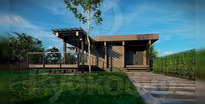 Уютный и современный дом с террасой.