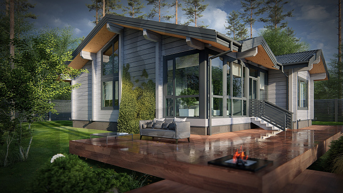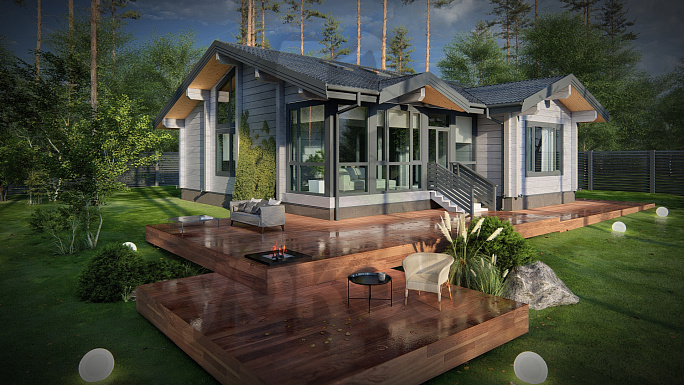 Сруб по этому проекту одноэтажного дома уже запилен на заводе и полностью готов к сборке на Вашем участке.