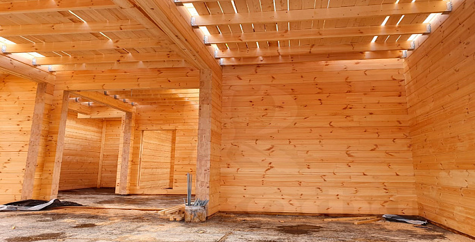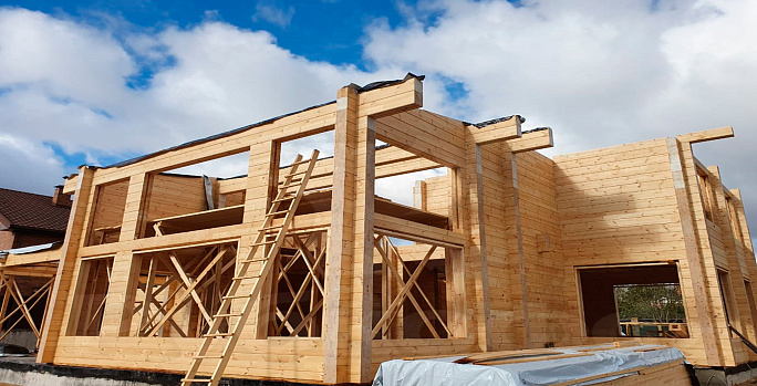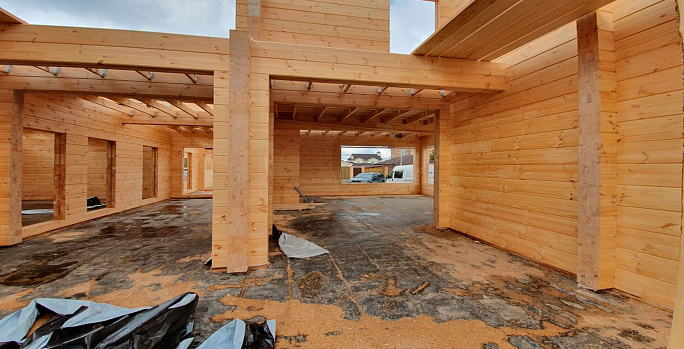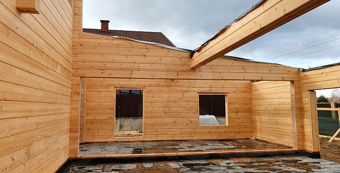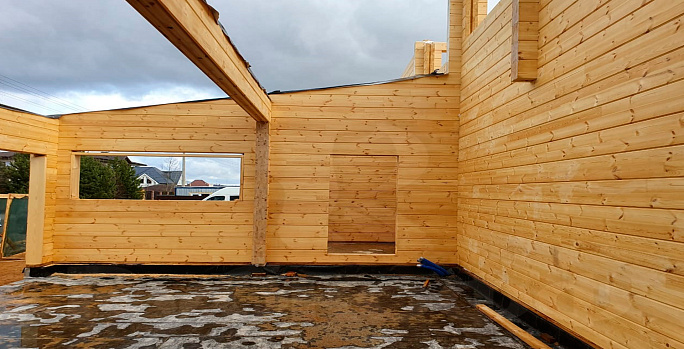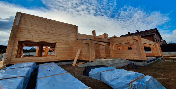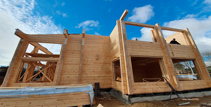 Продолжаем сборку коробки дома из клееного бруса по индивидуальному проекту.