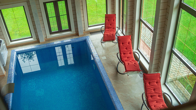 Площадь помещения относительно небольшая, однако, внутри есть все для комфортного отдыха: бассейн, бильярдная, парная, комната отдыха и спальня.