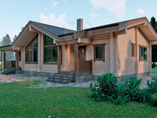 Во всю продолжаются работы на одноэтажном доме из клееного бруса. Проект пережил много изменений, итоговым вариантом предусмотрена парная, просторная гостиная с кухней-столовой, 2 спальни.