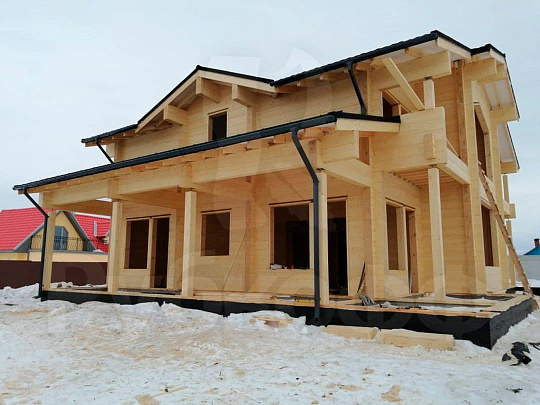 Завершаем работы по монтажу чистовой кровли и водосточной системы на доме из клееного бруса в Челябинской области.