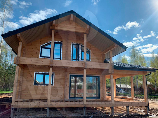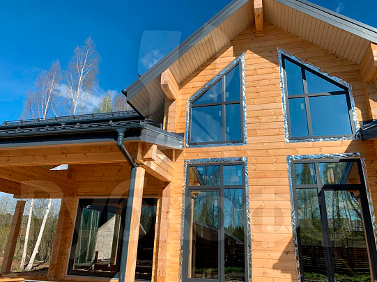 Завершили монтаж окон в доме из клееного бруса. Дом получился солнечным, что особенно подчеркивают второй свет и панорамное остекление.